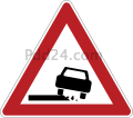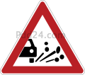Участок дороги, на котором возможен выброс гравия, щебня и тому подобного из-под колес транспортных средств.