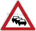Обозначение приближения к перекрестку, участок которого обозначен разметкой 1.26 и на который запрещается выезжать, если впереди по пути следования образовался затор, который вынудит водителя остановиться, создав препятствие для движения транспортных средств в поперечном направлении, за исключением поворота направо или налево в случаях, установленных настоящими Правилами.