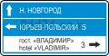 , установленных в населенном пункте, вставки с фоном зеленого или синего цвета означают, что движение к указанному населенному пункту или объекту после выезда из данного населенного пункта будет осуществляться соответственно по автомагистрали или другой дороге; белый фон знака означает, что указанный объект находится в данном населенном пункте.