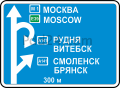 Направления движения к пунктам маршрута. На знаках может быть указано расстояние (км) до обозначенных на них объектов, нанесены символы автомагистрали, аэропорта и иные пиктограммы.